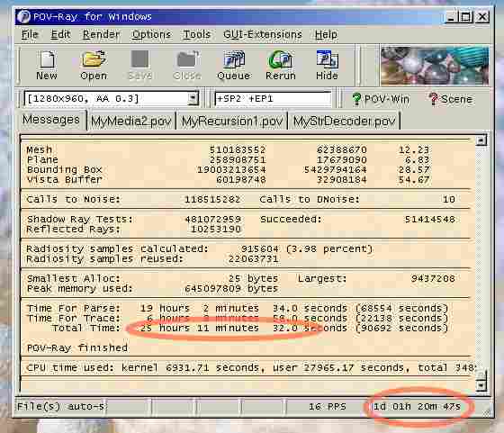 3) The time at the bottom of the POV-Ray window: This is the time elapsed