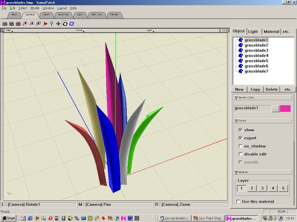 I modelled some blades of grass in hamaPatch (see the pic), exported to