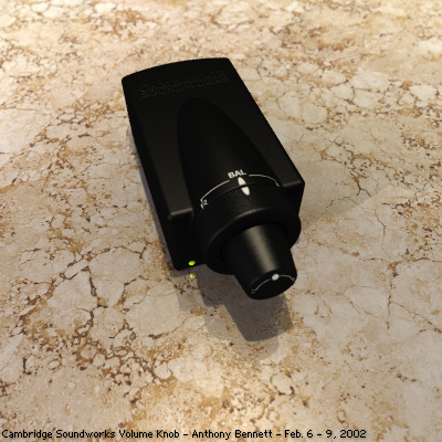 Soudworks (my computer sound system sucks) Volume knob, but I can say that