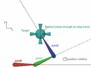 I am trying to move the tip of Joint2 (blue) to the target.  The circle is