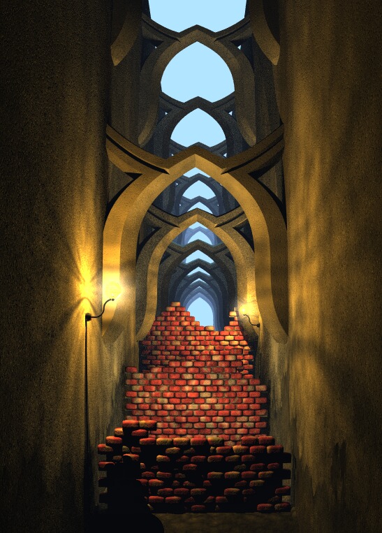 >simple macro was made for the brick walls, isosurfaces for the arches and