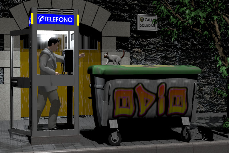 *Pavement, and glass of the telephone booth look too clean. Have you ever