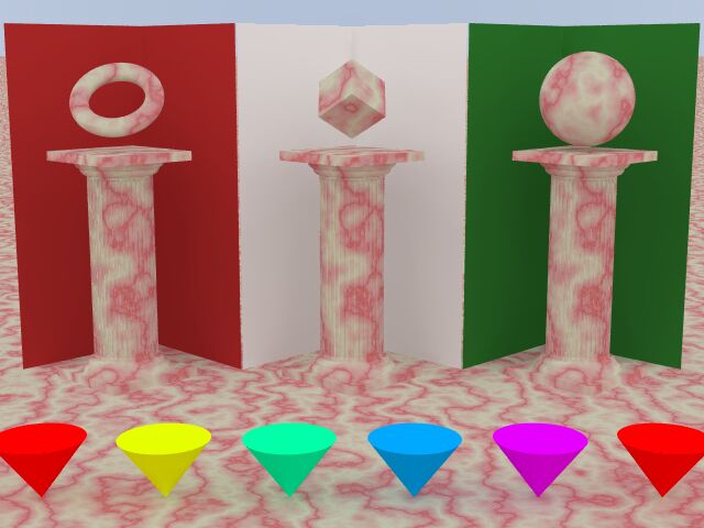 The new radiosity test scene features three complex objects with colored