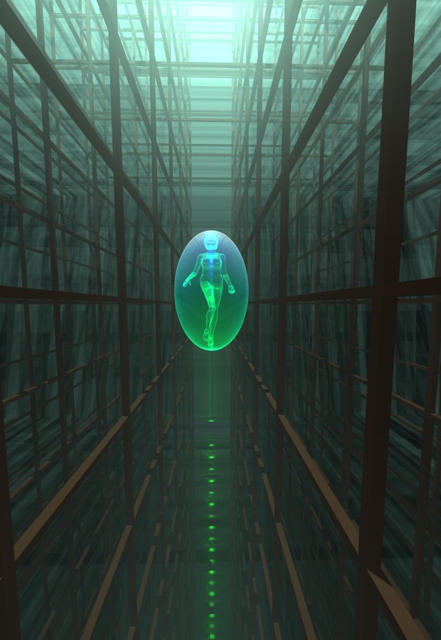 caustics, refracting photons...just for the bubble and woman, though;