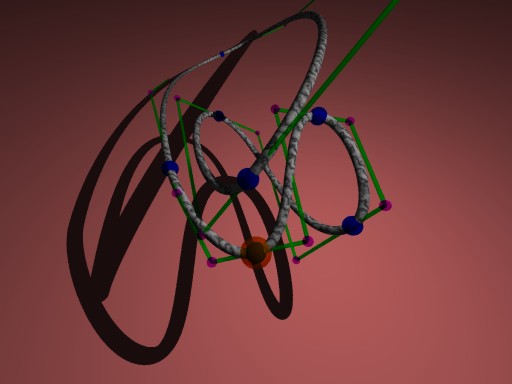 The picture shows the bezier-spline connection the blue spheres. The