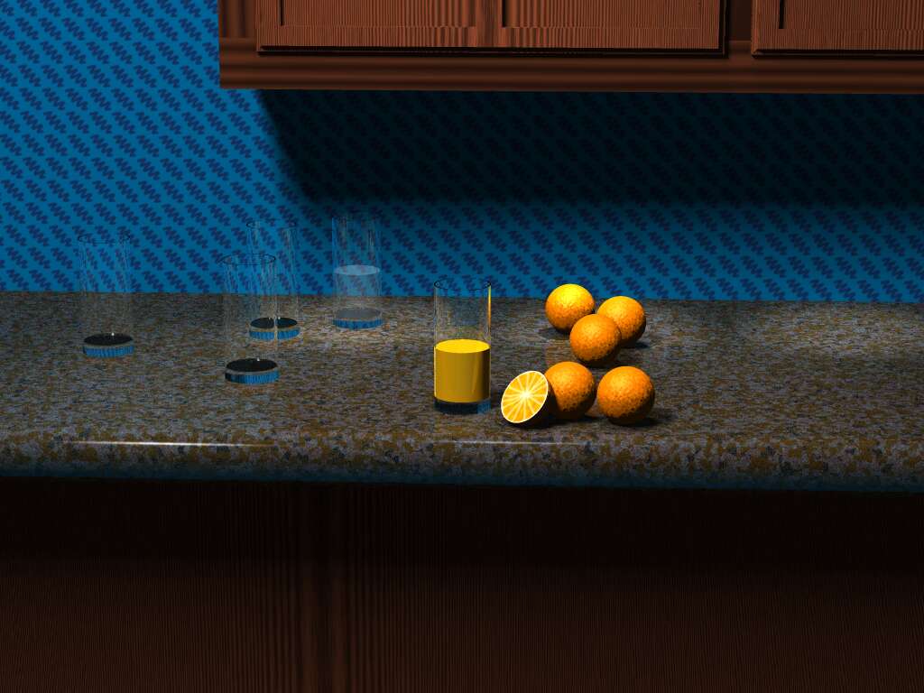 caustics visible (save for a reflective caustic on the top of the orange