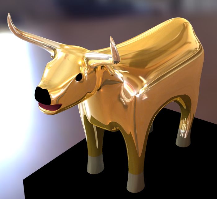 > This bull is made with the mesh editor in Moray 3.5> Rendered with MLPov (and the kitchen probe).> Hope you like it.