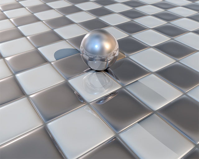 Subject: Checkered plane under reflective sphere (~80KB jpeg)