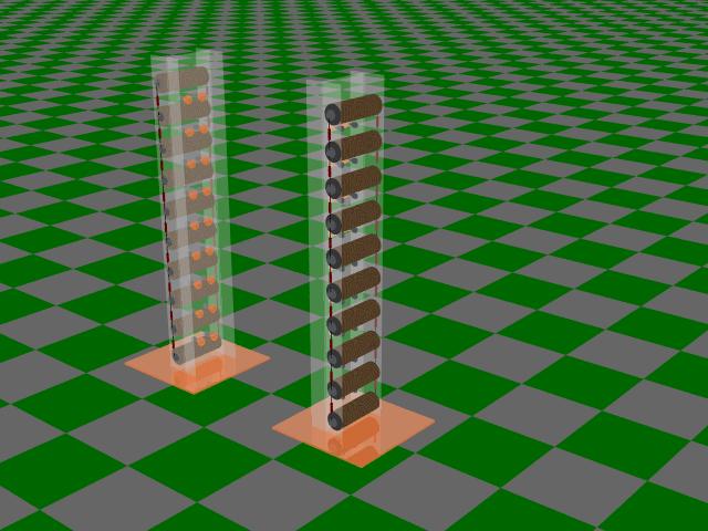> It's two towers of identical capacitors and spark gaps, fed with a ladder of