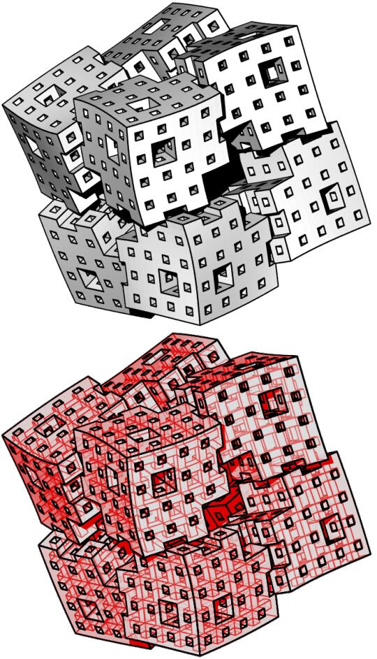 missing density), and the root shape of the other (the Menger's corner)