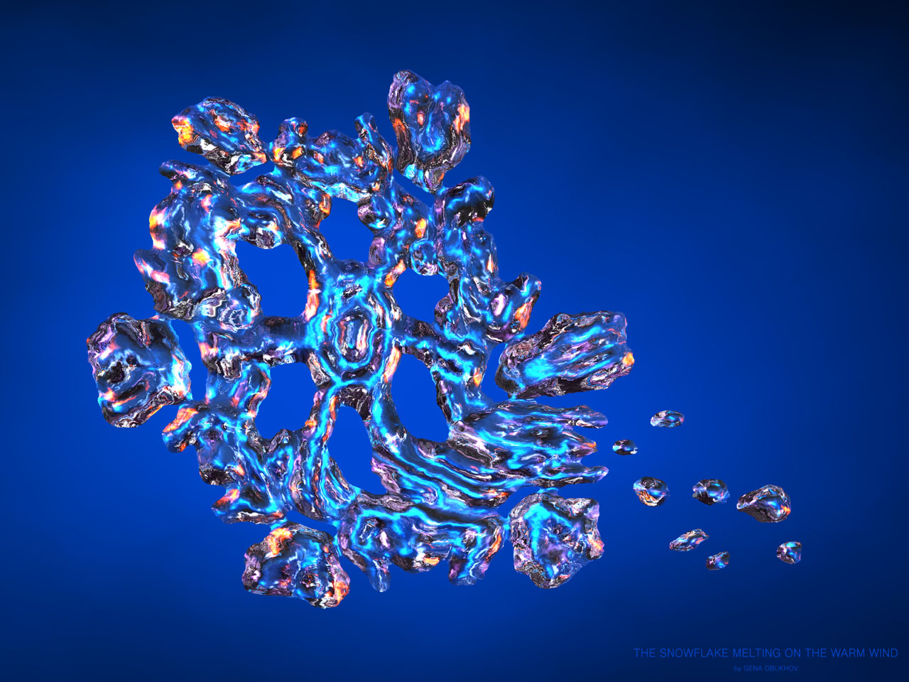> The snowflake melting on the warm wind.> Just a heightfield, several light sources> and wrinkled camera.> > Sorry for high resolution and filesize but> the image looks good only in high resolution> (especially in 8000*6000 :)> > Gena.> > ------------------------------------------------------------------------>