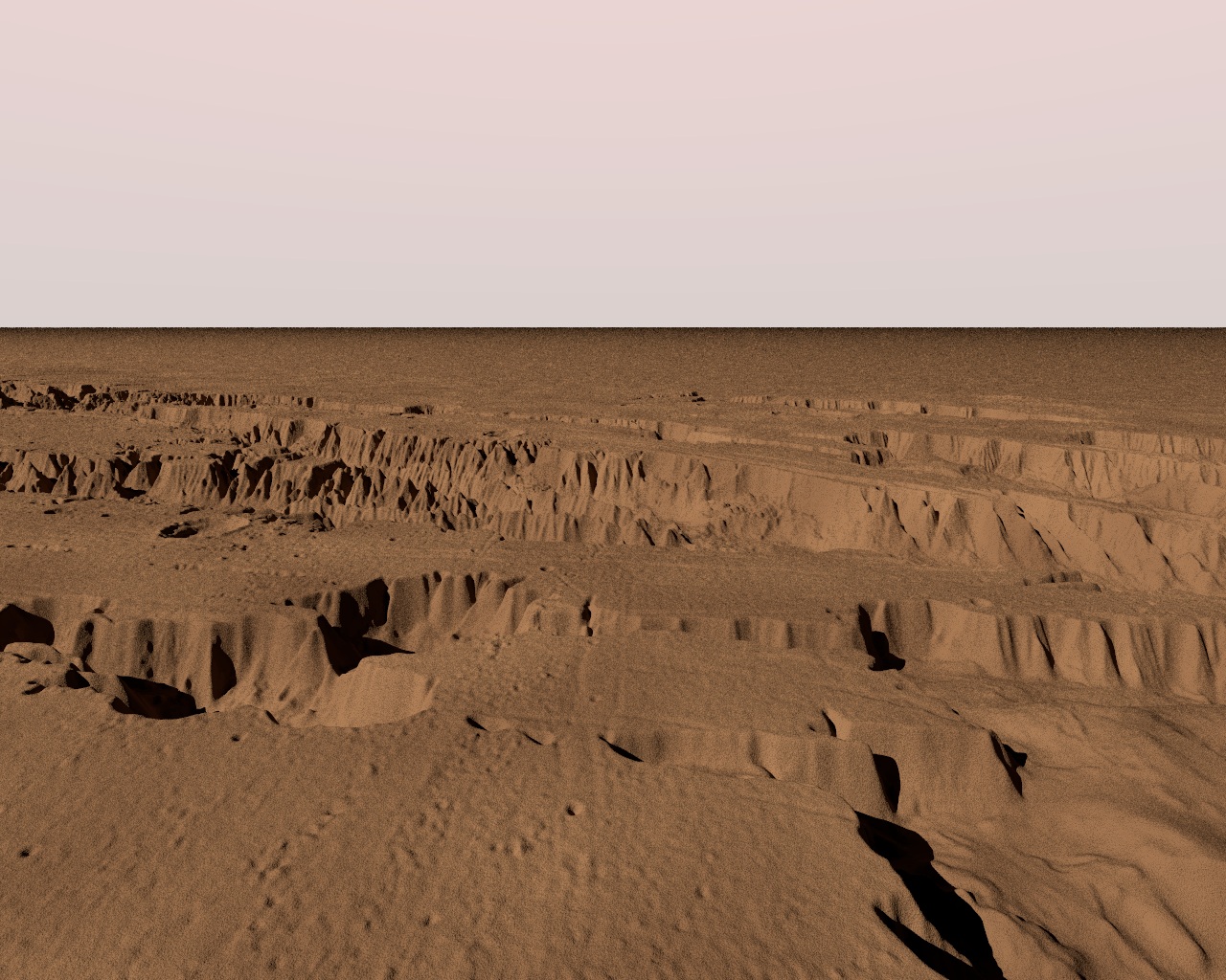 > A test render after finally getting a 250MB Vicar> data file converted to 16 bit PNG. It's only "sort of"> Valles Marineris because I actually mirrored the height_field> to allow some camera height without seeing the front end of> the strip. And of course in the distance is only a plane.