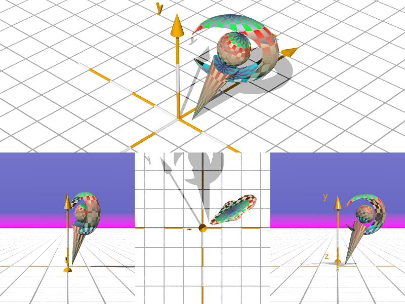 spaceship on a spline from 4 angles at once.