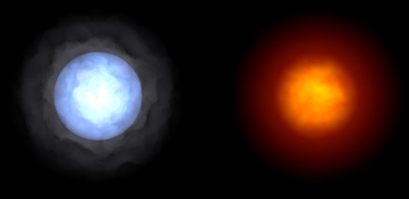 > Hmm, looks like a closeup of a blue dwarf star on the left, and a