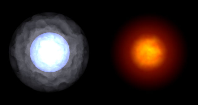 long-range photo of a red giant on the right.