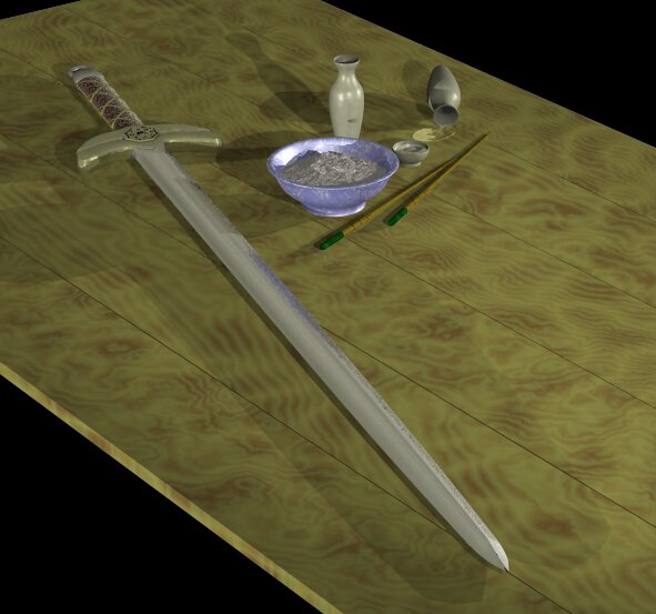 This is the sword, sans scabbard, mixed in with another scene I did at