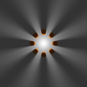 >In the image, you will see the ends of 8 orange cylinders arranged in