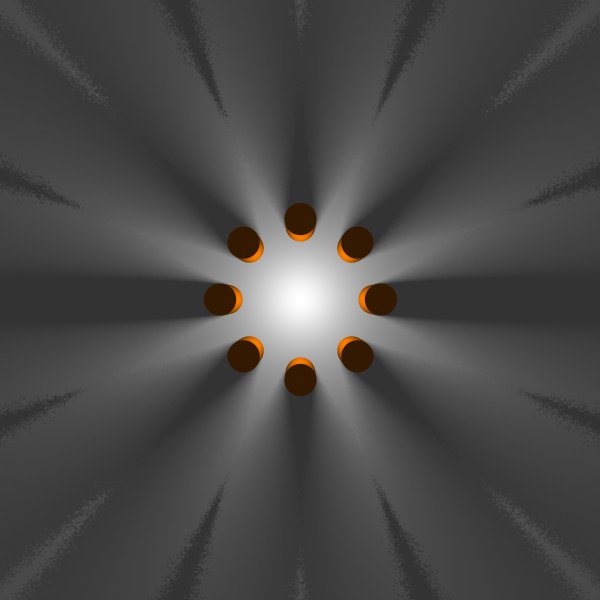 >shadows from the cylinders should all be the same, but they aren't.