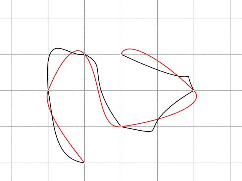 red line has tcb (tension, continuity and bias) parameters set constant for