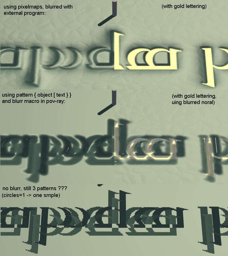 #declare Unblurred = function{pattern{object{ some text }}}