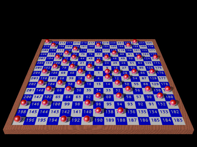 > Reflective spheres marking a checkered plane's primes (integers spiraling> out from the center)> > > ------------------------------------------------------------------------>