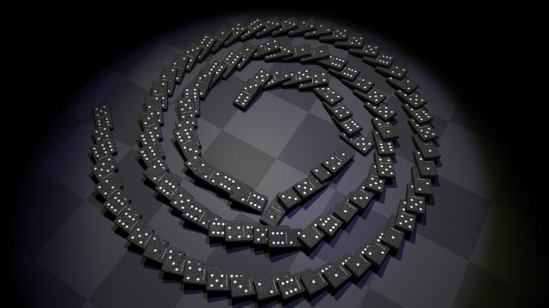 Perhaps make a single domino red? Change the camera angle a little bit, to