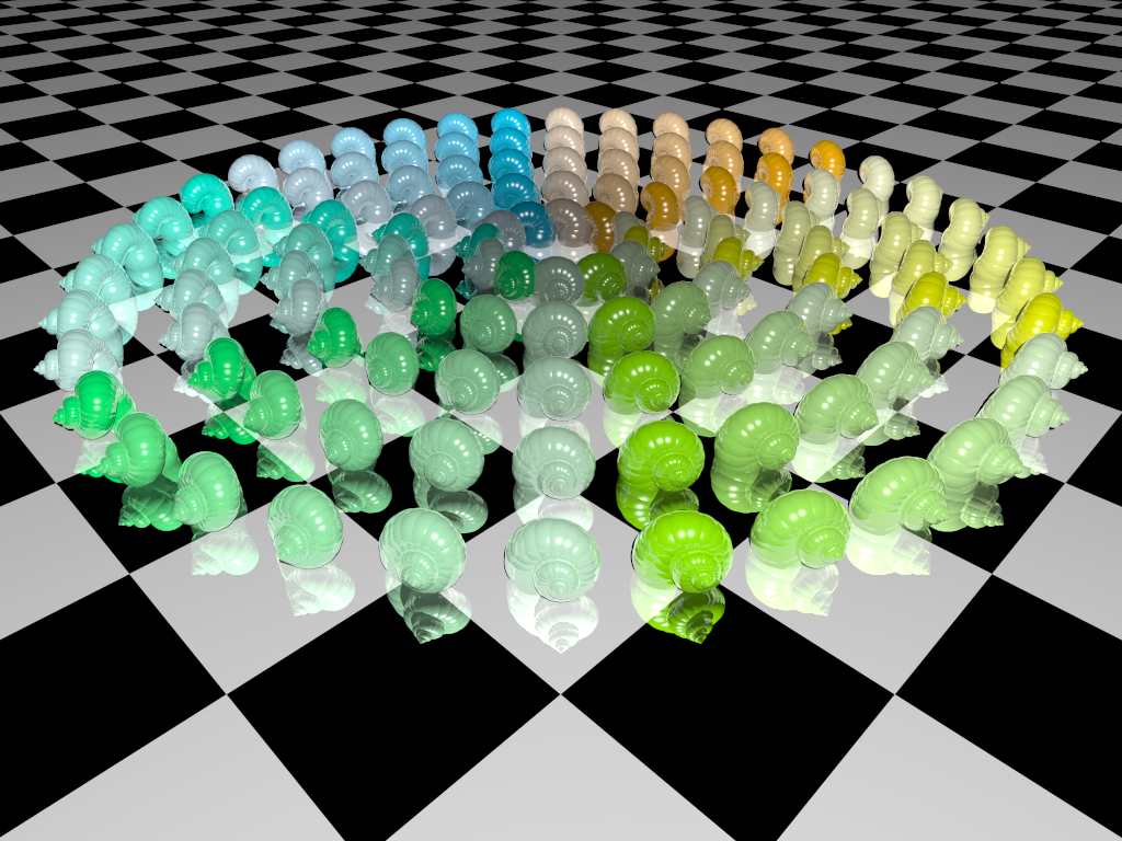 R rotate z*A*360 pigment{rgb<T,.6,1-T*T>}finish{reflection{0,1}