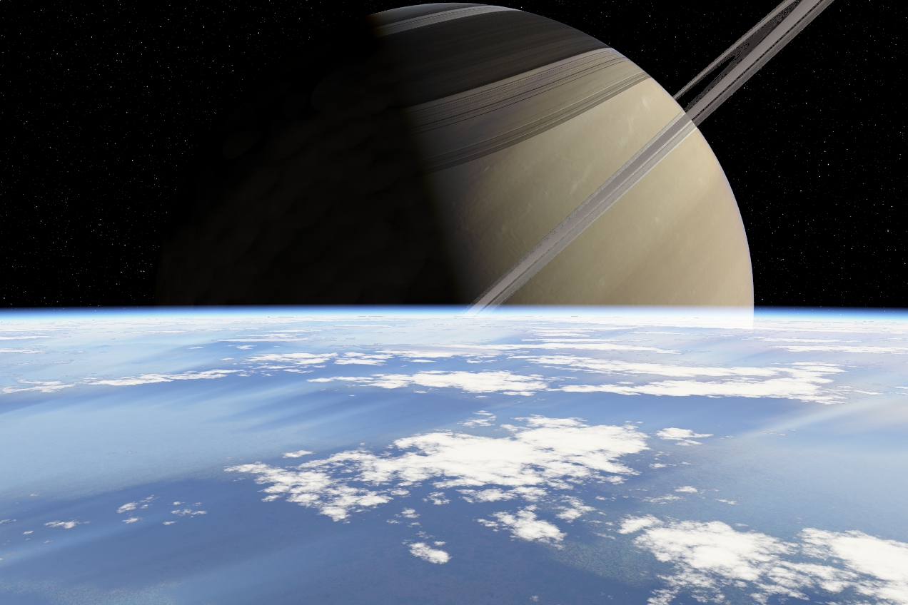 > The Saturn was done by POV-Ray, and the planet with life was done by