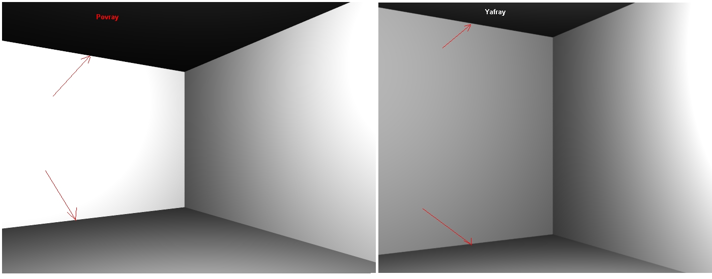 > POV-Ray (using radiosity and antialiasing test scenes and comparing