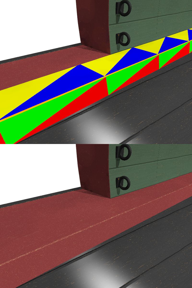 > 1. Rebuilt all of the deck structures, adding round corners, glass in the