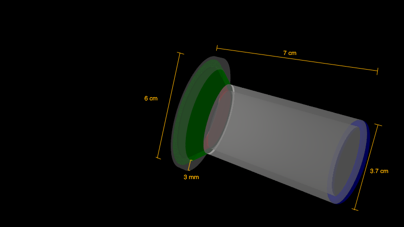 diameter: 3.7 cm, wall thickness: 3 mm (0.3 cm)