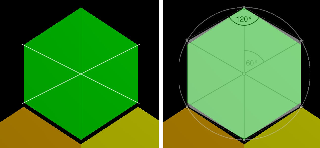 I also superimposed a hexagon diagram from Wikipedia; it shows that the internal