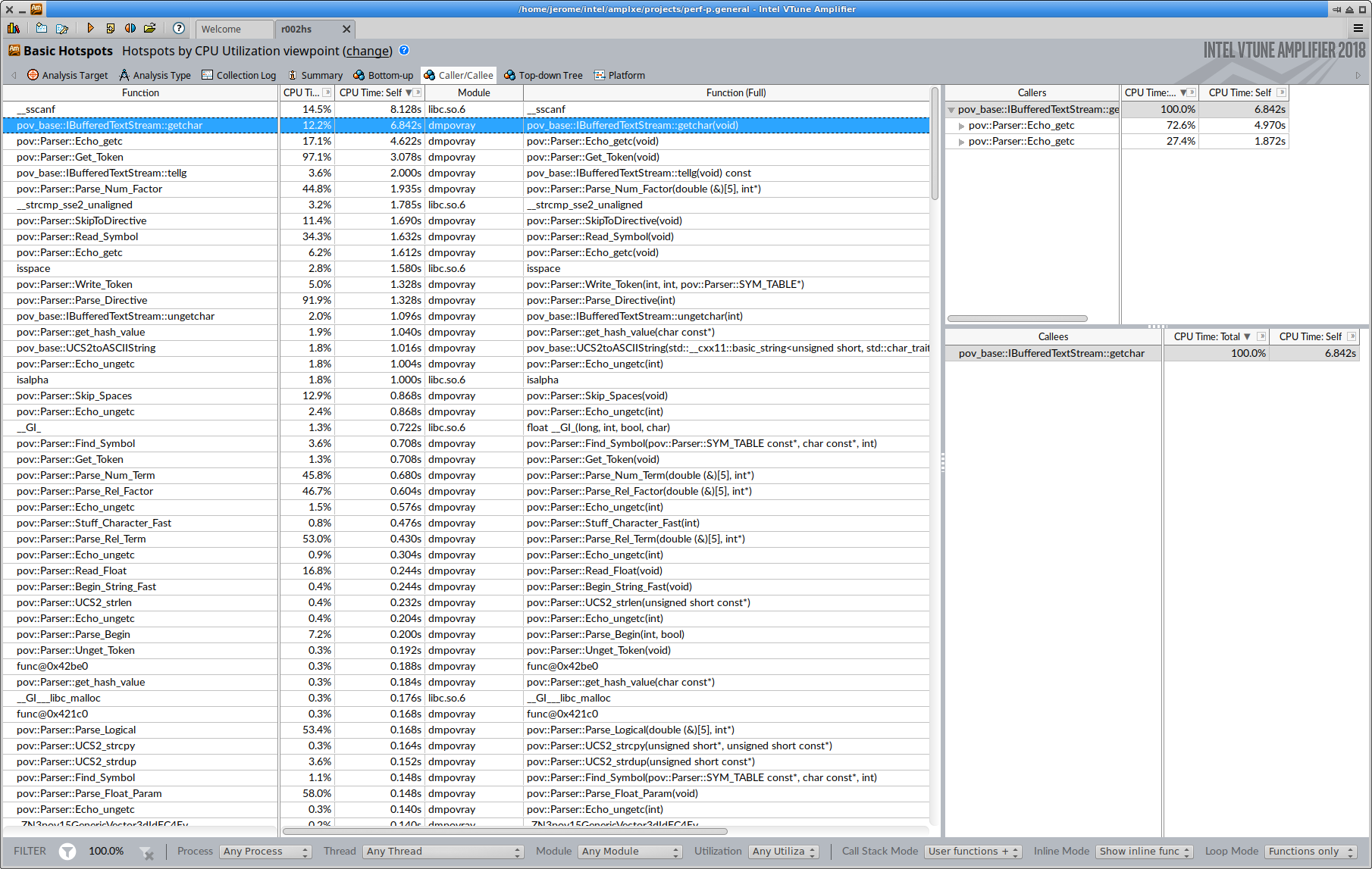 code) of povray and a profiling tool that does not slow down too much