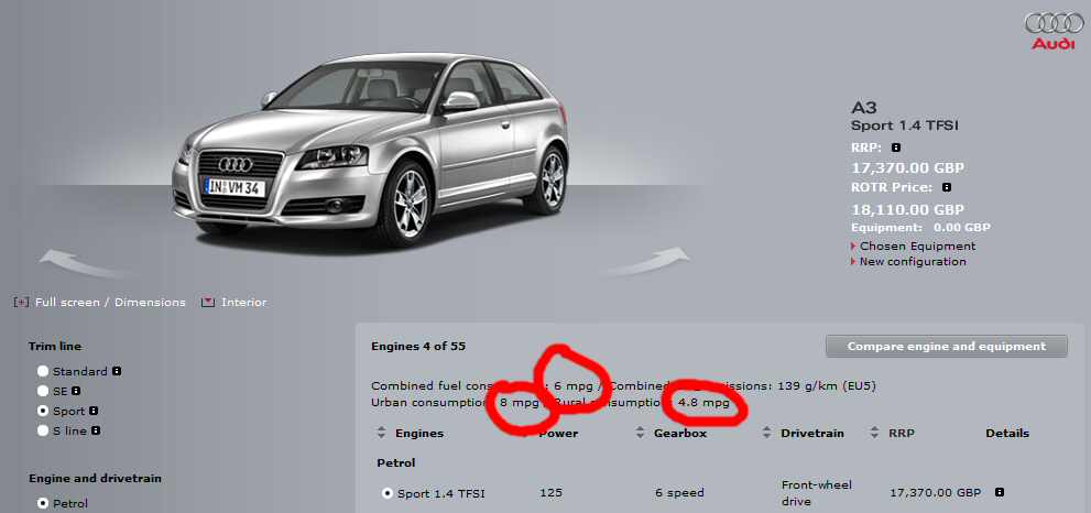 > I LOL'd at the fuel consumption of a basic Audi A3 from the UK site.