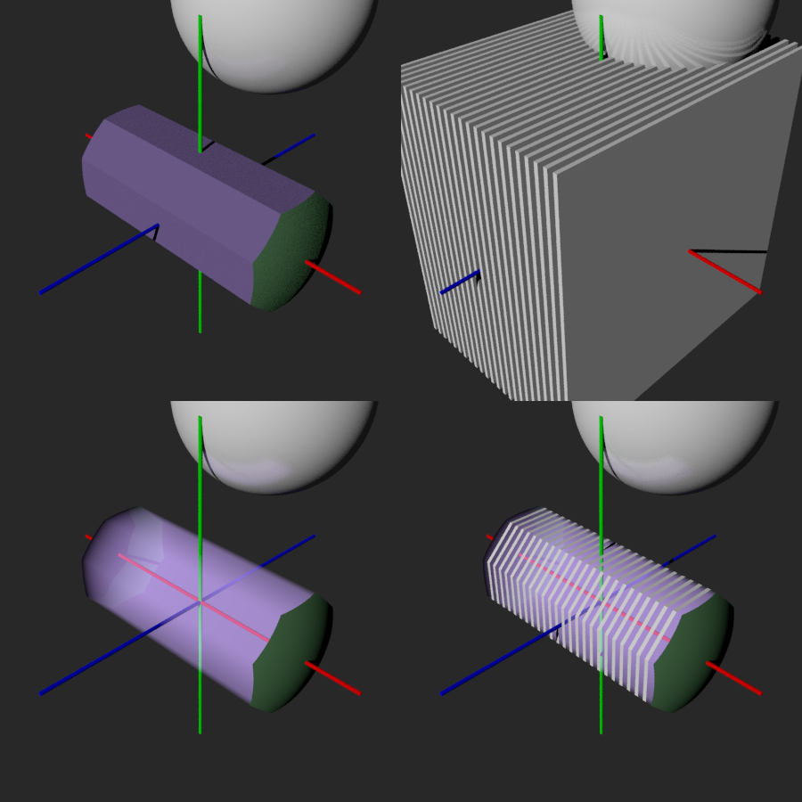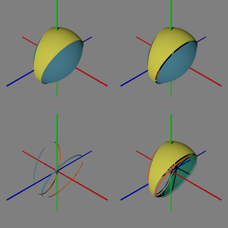 bounded_by{} and clipped_by{} spheres. One showing results with